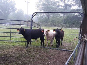 Working the cows went relatively smoothly including the branding and palpating. 11 of the 14 cows are bred. (Plans are being made for the 3 that aren’t bred.)Once the cows were finished and let out to the pasture, the calves were taken care of and kept inside the pen. Stevie Nicks, Annie, and Joni Paycheck were the last three calves born and the time has come for their weaning. Looks like they were wondering where all of the cows had gone! The calves made their way to the trap in the pen where they had last been with their Mama Cows.