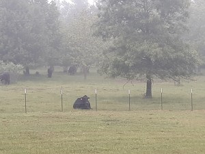 Joni and Annie came to see us at the fence, but Stevie (in the background) was already bawling. Joni found her way to the fence where her Mama was. Mama wasn’t happy that her baby was locked inside the pen! She has been a very good and protective Mama. In fact, the next few mornings she came to the fence by the house and moo’ed to us. In fact, the first morning after the other cows wandered off after their morning cubes, she laid down at our fence. Since we have three cows to breed still, the decision was made to add Genesis to the pen with the calves. She is a yearling and we aren’t ready for her to be bred. She has had a calming effect on the calves. For the most part she has been happy with the creep feed, cubes, and extra attention she has been given, but isn’t particularly happy to be locked up again. She will definitely be the leader of this pack!