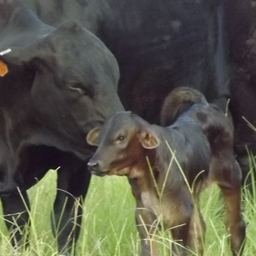 Hanna was jet-black when she was born showing her Black Brangus heritage. She is curious about everything and everyone around her! When you talk to her and she looks straight at you and wiggles her ears! She loves to run and frolic with the other calves and yearlings.